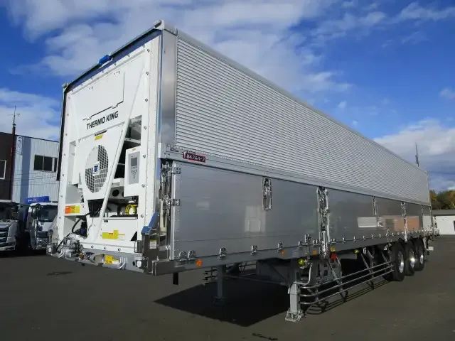 登録済み未使用車 車検:令和8年9月28日迄 令和7年式 フルハーフ 14m3軸冷凍ウイングトレーラー スーパーシングル リフトアクスル後軸残し 積載:24,000kg 第五輪:10,980kg